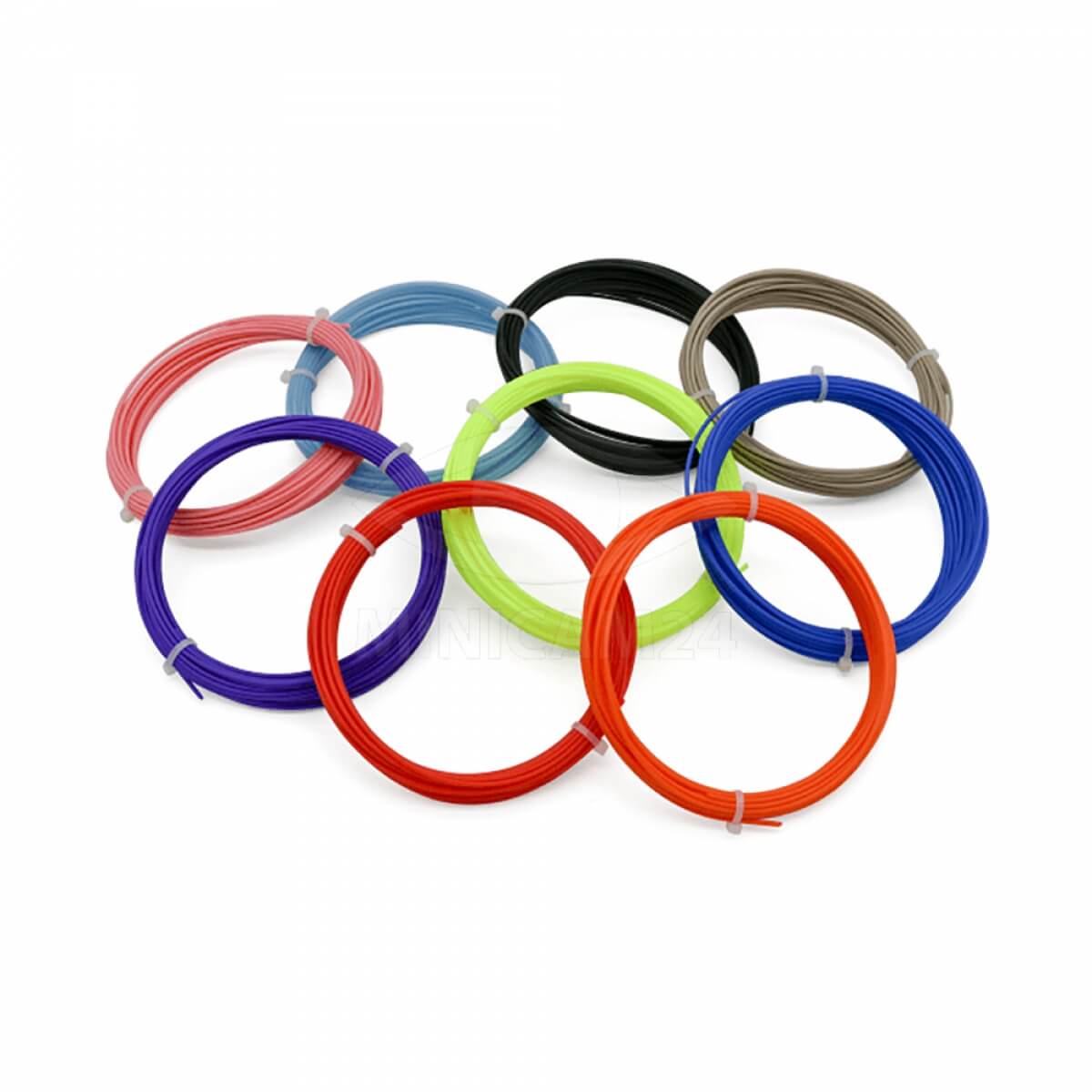 Пластик PLA для 3D ручек представлен в 10 цветах. Выполнен в виде нитей длиной 10 метров и диаметром 1,75 мм. Во время нагревания пластик не выделяет вредных веществ, полностью безопасен для людей и окружающей среды. PLA материал плохо переносит воздействие влаги, поэтому созданные из него фигуры следует держать подальше от жидкостей. Цвета попадаются случайным образом.