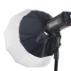 Софтбокс оснащен байонетом типа Bowens, что делает его совместимым с большинством студийных светильников и вспышек.