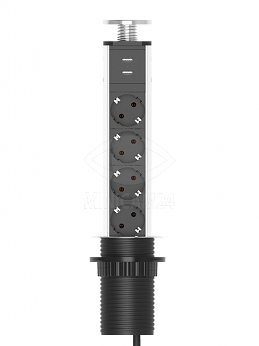 Встраиваемая выдвижная розетка CorePort (4 розетки, 2 USB-A, 1.8м кабель)